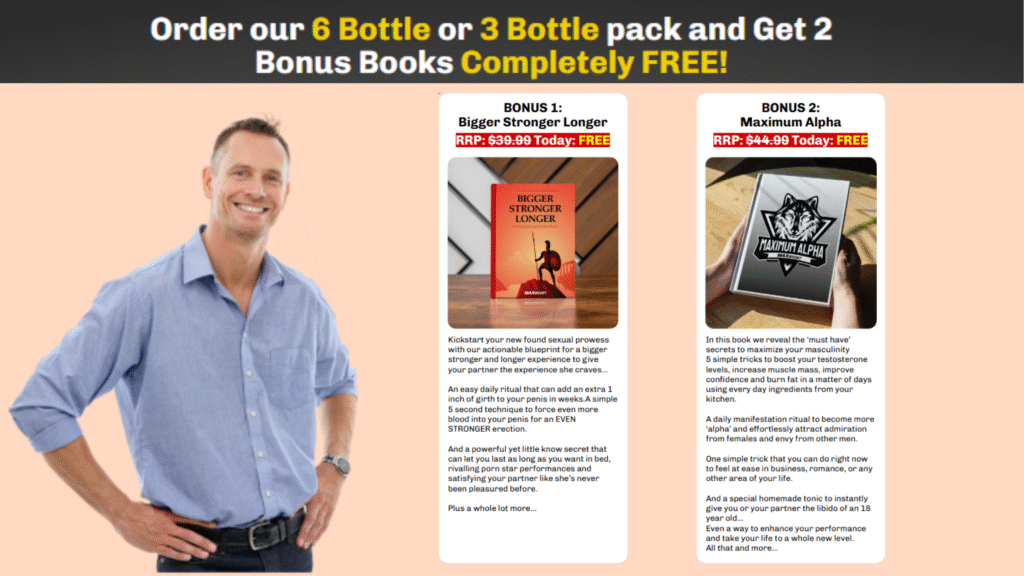 When evaluating any natural male enhancement formula, cost and credibility matter as much as ingredients. The Max Boost supplement offers three package options: a 2-bottle starter pack, a 3-bottle mid-tier, and the best-value 6-bottle pack, which includes two free eBooks and free U.S. shipping. Each option provides a clear opportunity to test results and support healthy erections over different timeframes.