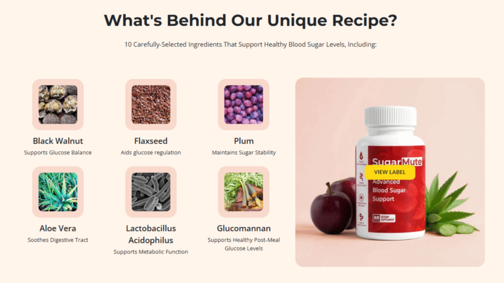 When comparing blood sugar supplements, SugarMute consistently ranks higher in SugarMute reviews due to its comprehensive, natural formulation. Unlike competitors that often rely on a single ingredient or synthetic additives, SugarMute combines Black Walnut, Flaxseed, Plum, Aloe Vera, Glucomannan, and Lactobacillus Acidophilus to create a full-spectrum blood sugar support formula. This combination ensures that multiple pathways of glucose regulation are supported, including carbohydrate metabolism, insulin sensitivity, and gut health.